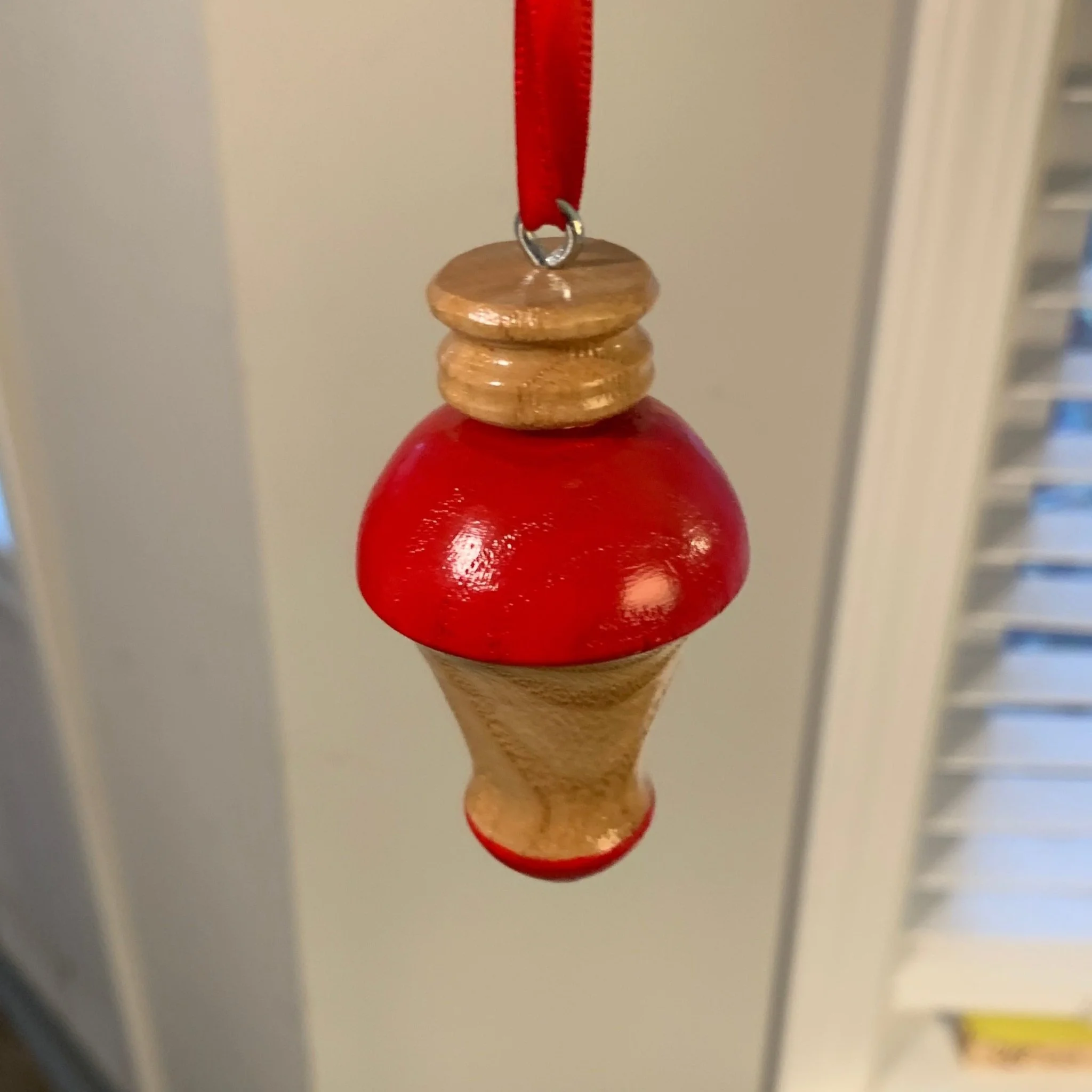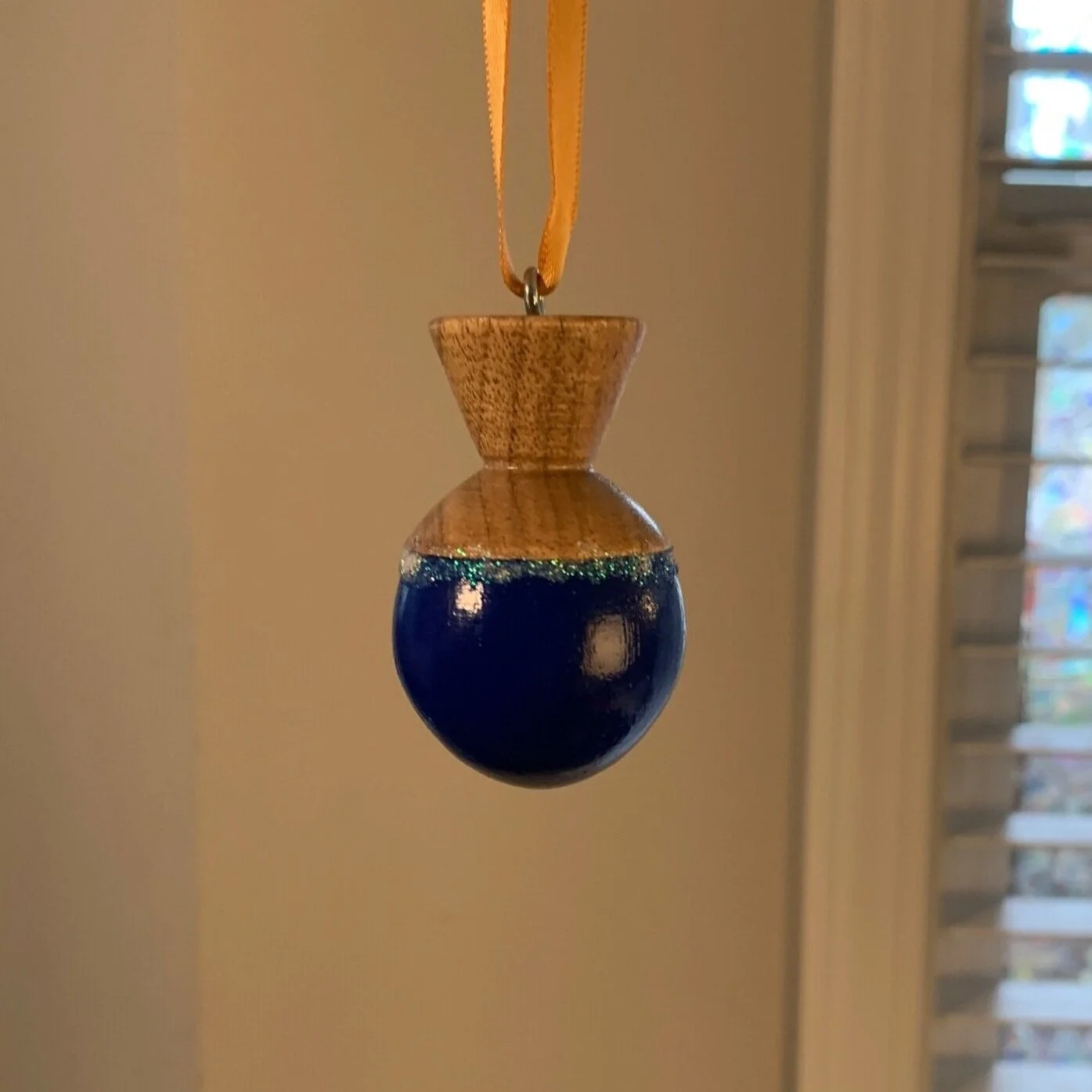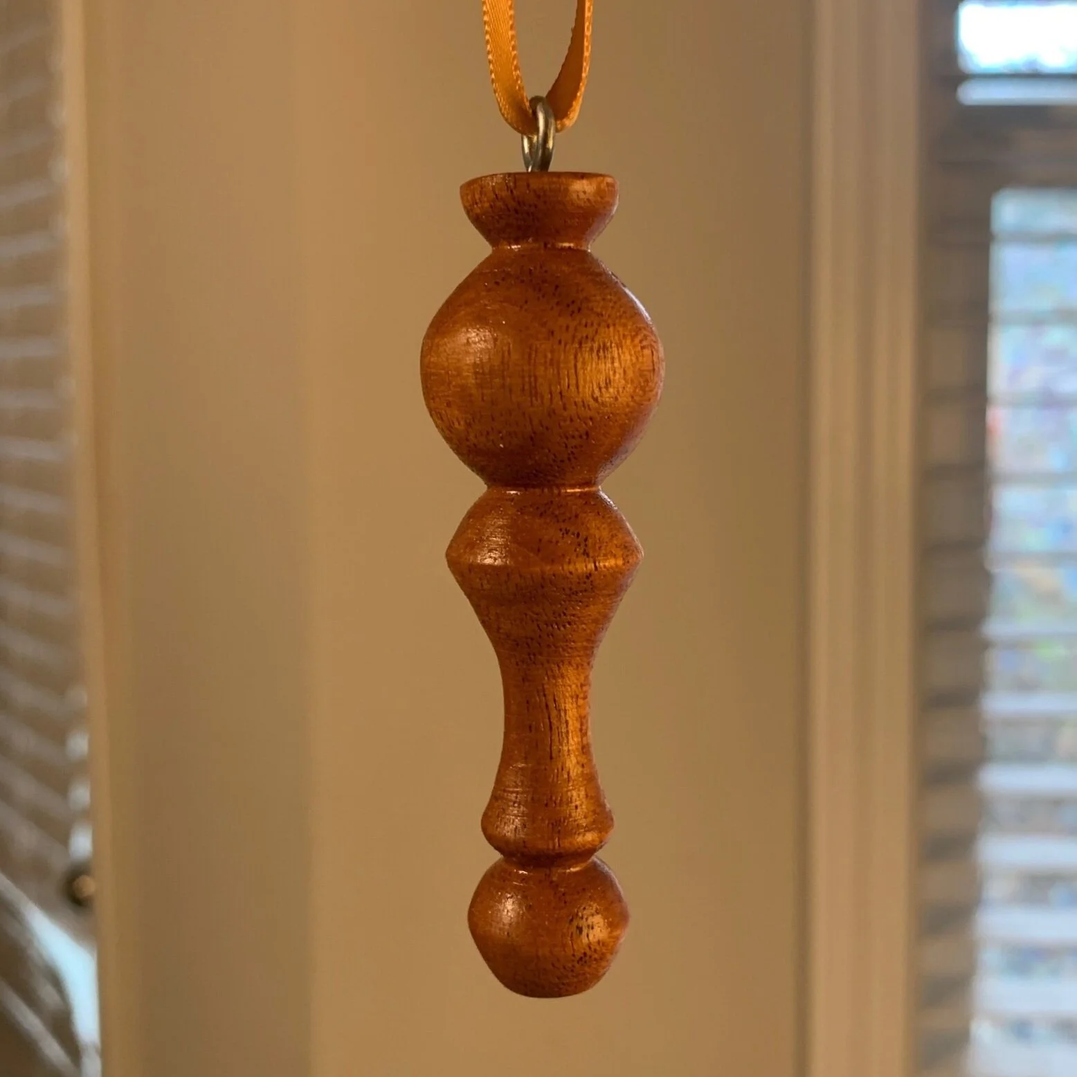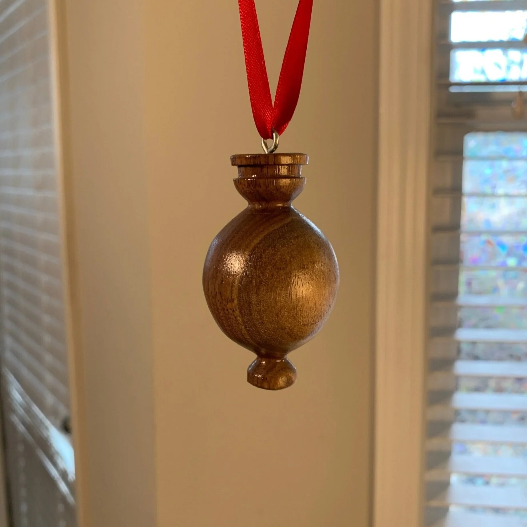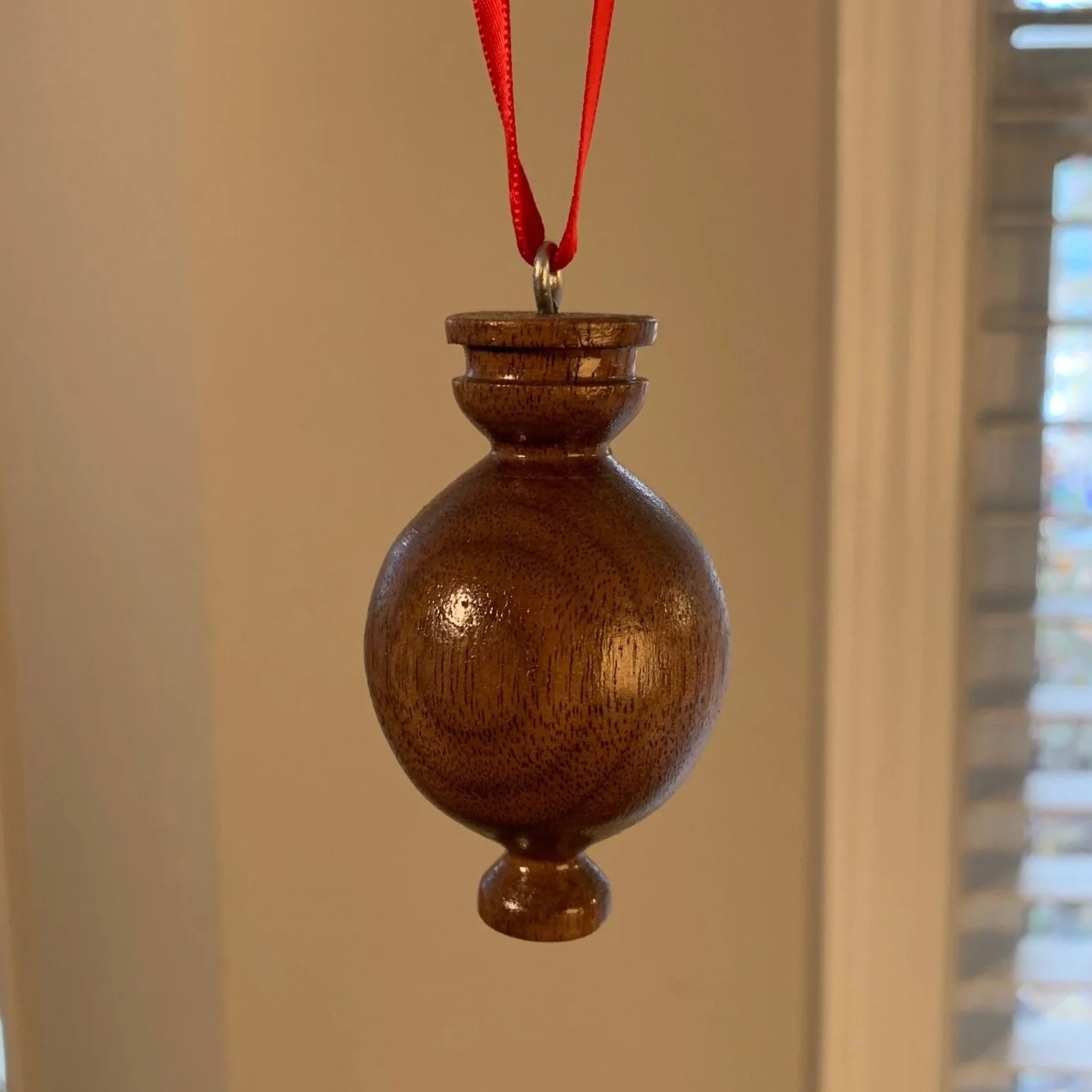 Julie turns all of her traditional wooden ornaments/fan pulls on the lathe. You can hang them on the Christmas tree or at the end of a ceiling fan chain. Each one is unique and 100% handmade from high-quality hardwoods of various types including: mahogany, maple, walnut, cherry, ash, and poplar. The cost of flat rate shipping covers up to 6 ornaments per box and will be applied at checkout. If there is an item that is currently sold out, you can contact Julie to request her to make a similar item.