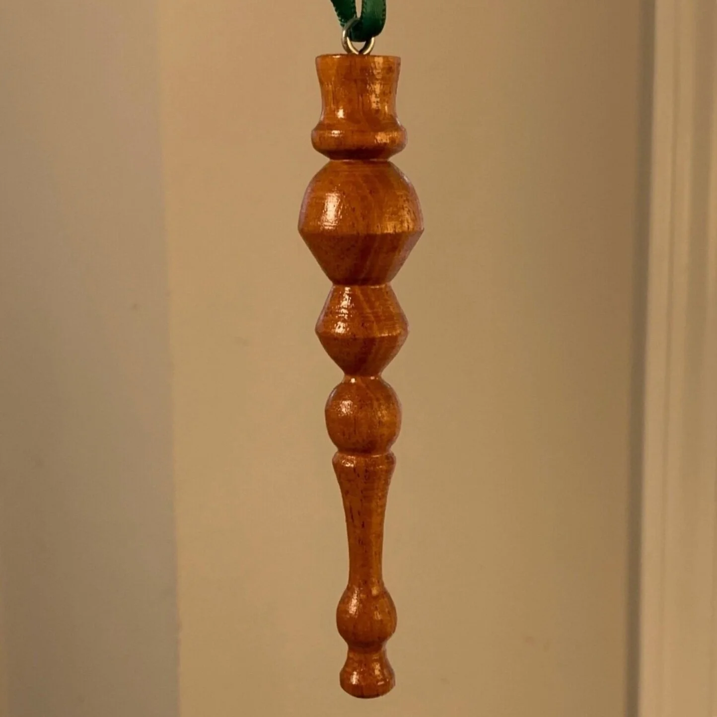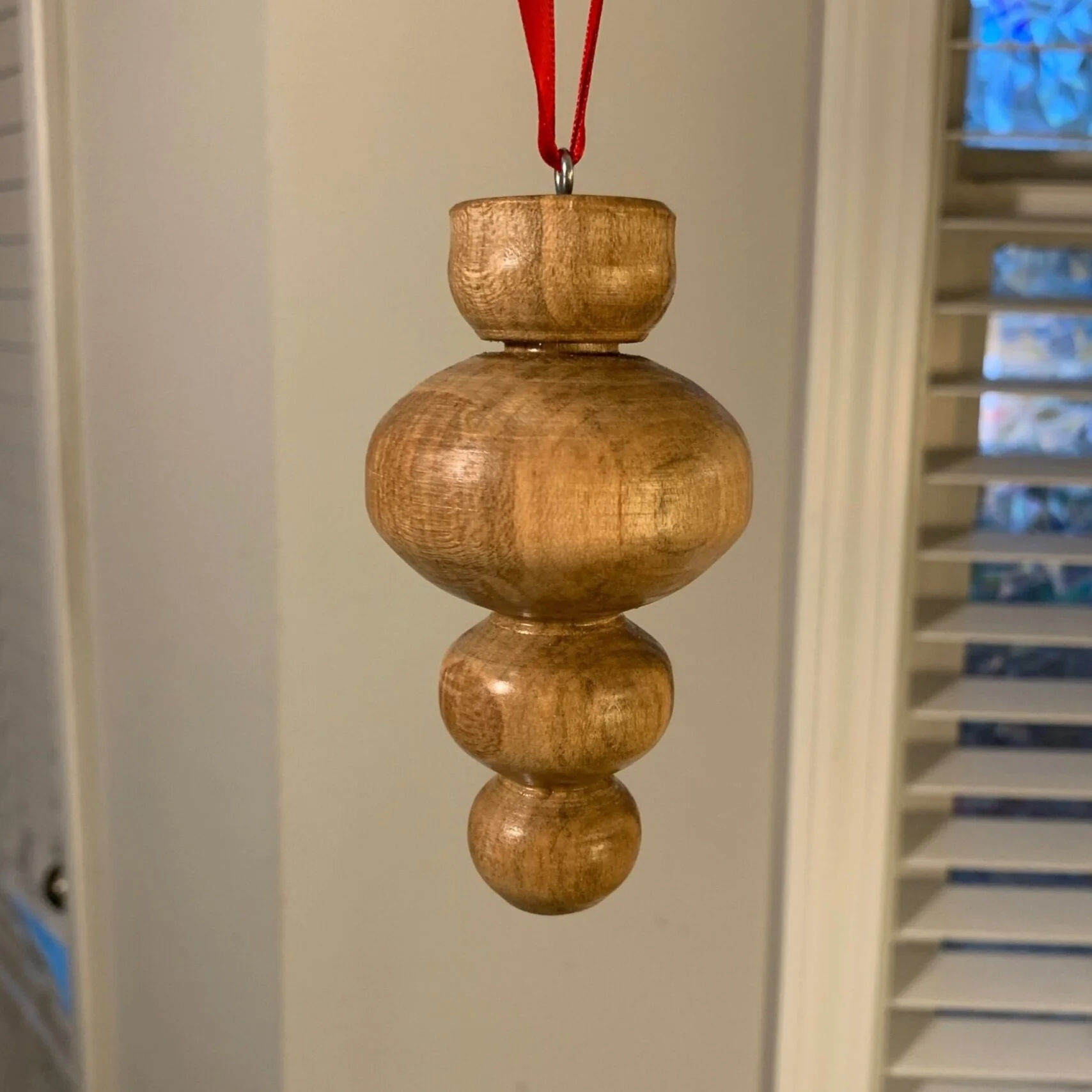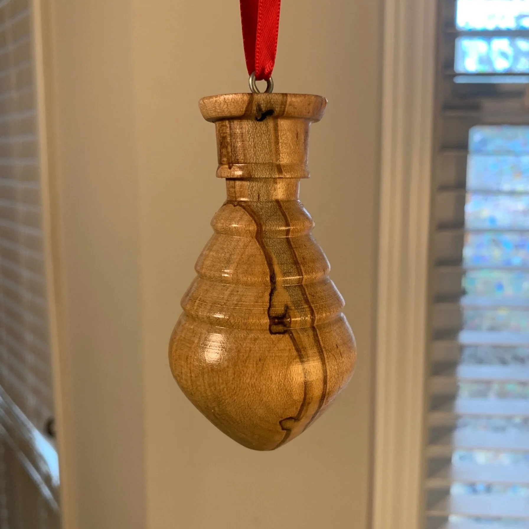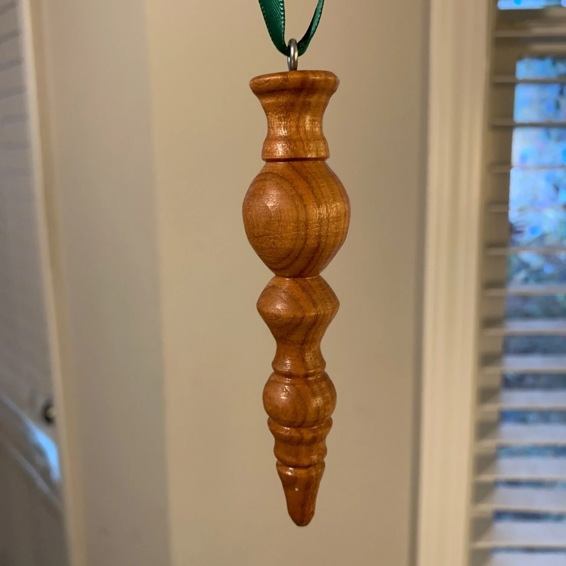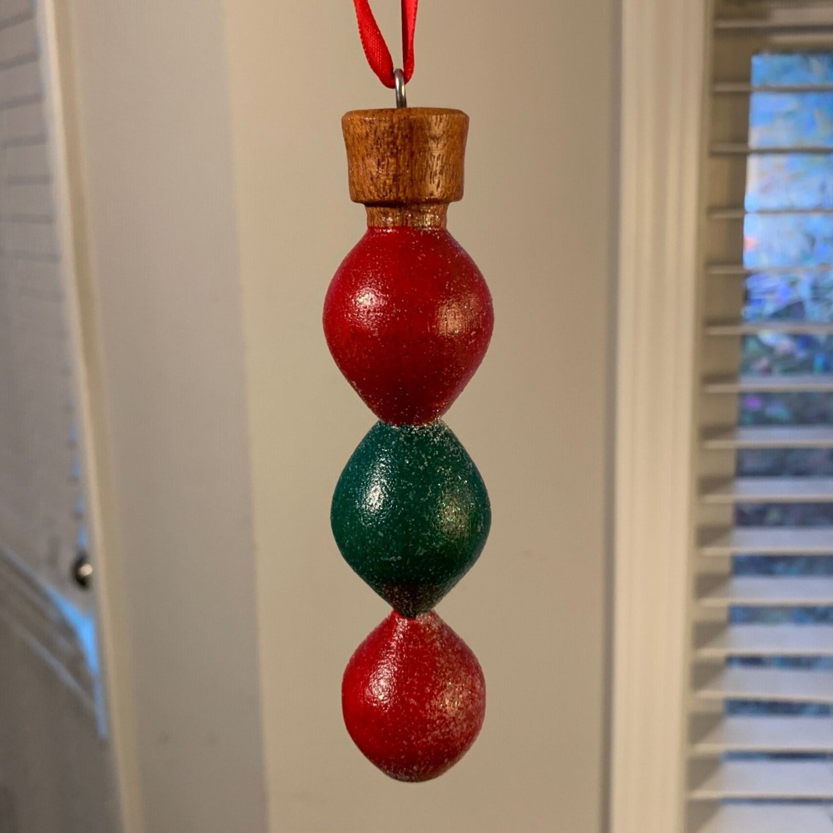 Julie turns all of her traditional wooden ornaments/fan pulls on the lathe. You can hang them on the Christmas tree or at the end of a ceiling fan chain. Each one is unique and 100% handmade from high-quality hardwoods of various types including: mahogany, maple, walnut, cherry, ash, and poplar. The cost of flat rate shipping covers up to 6 ornaments per box and will be applied at checkout. If there is an item that is currently sold out, you can contact Julie to request her to make a similar item.