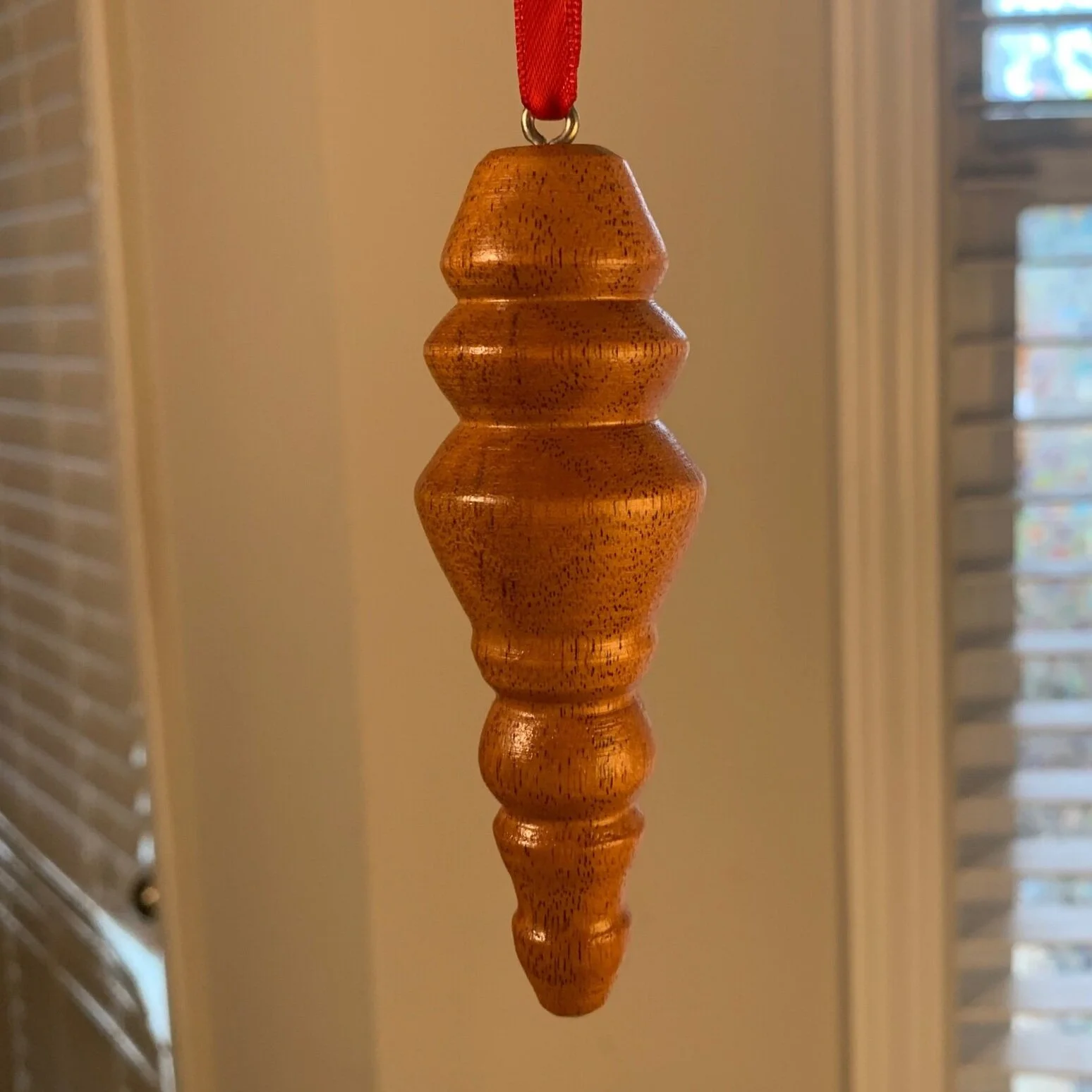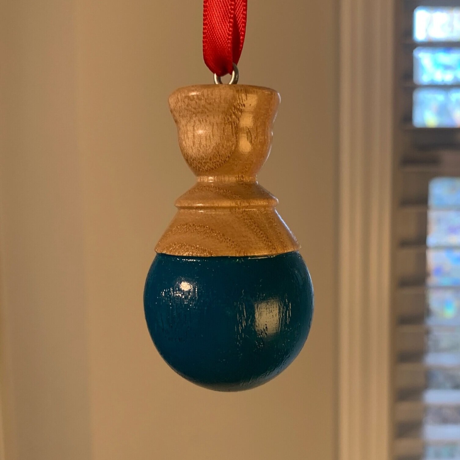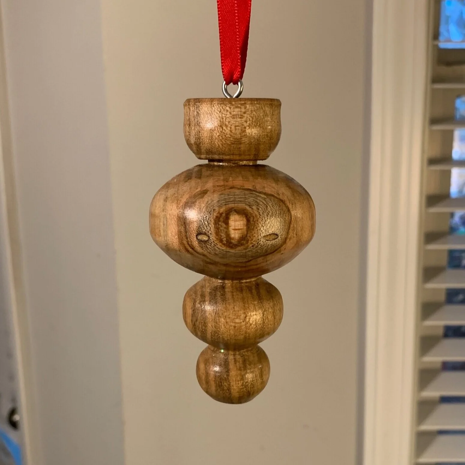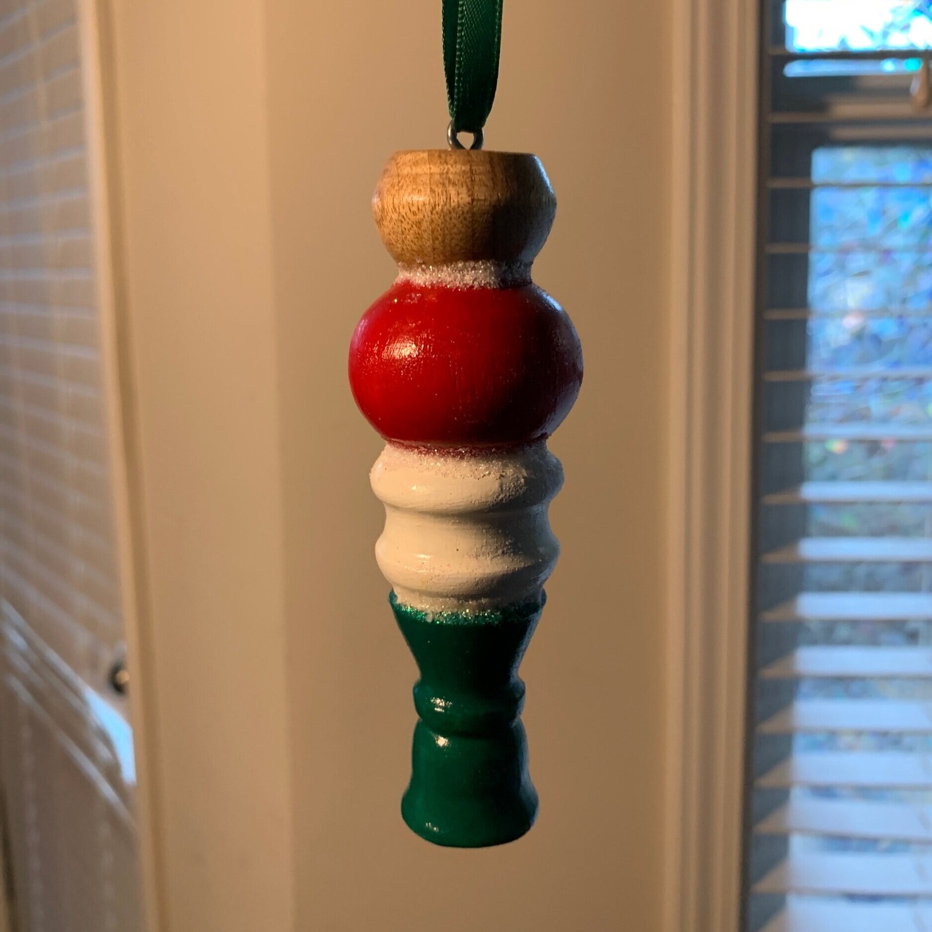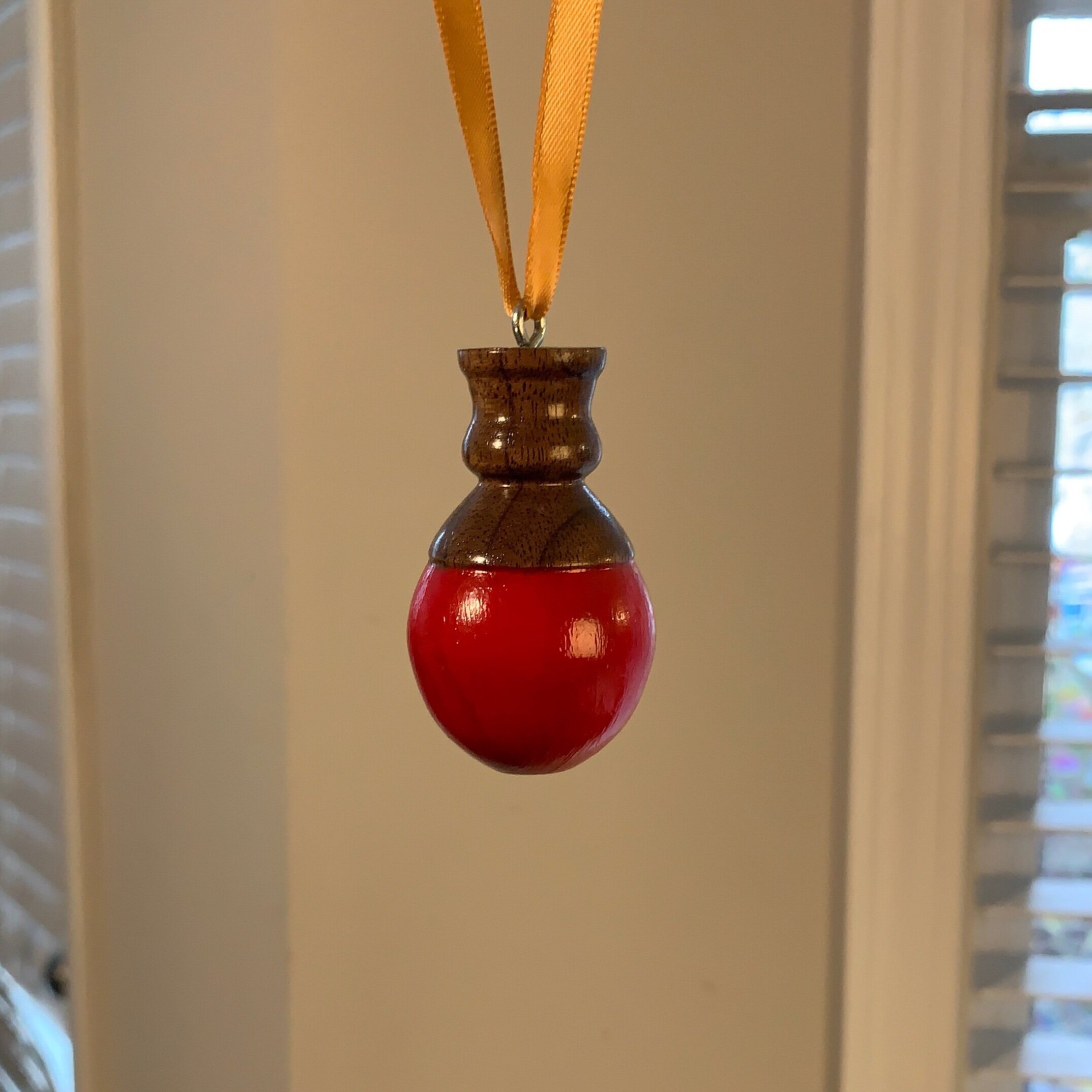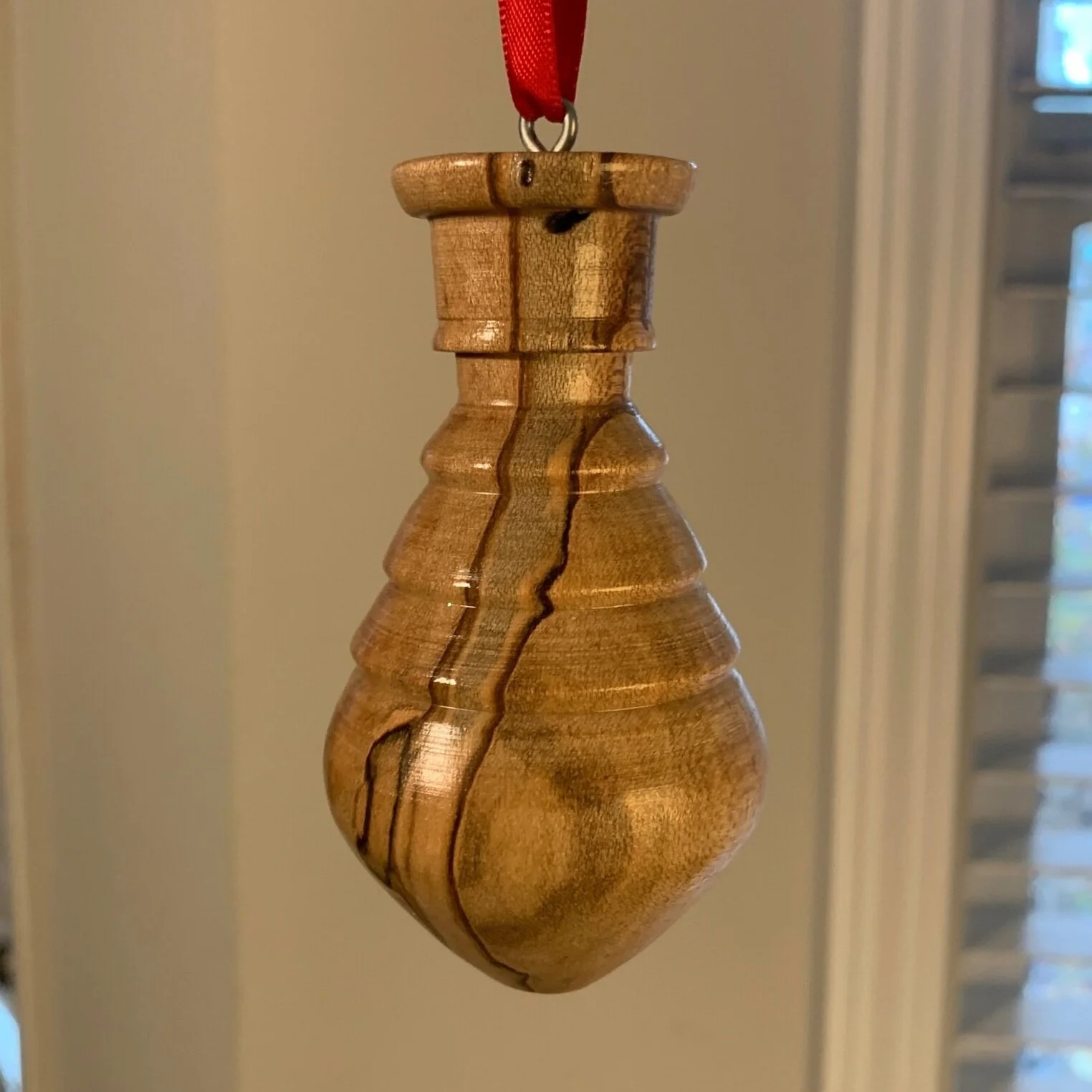 Julie turns all of her traditional wooden ornaments/fan pulls on the lathe. You can hang them on the Christmas tree or at the end of a ceiling fan chain. Each one is unique and 100% handmade from high-quality hardwoods of various types including: mahogany, maple, walnut, cherry, ash, and poplar. The cost of flat rate shipping covers up to 6 ornaments per box and will be applied at checkout. If there is an item that is currently sold out, you can contact Julie to request her to make a similar item.