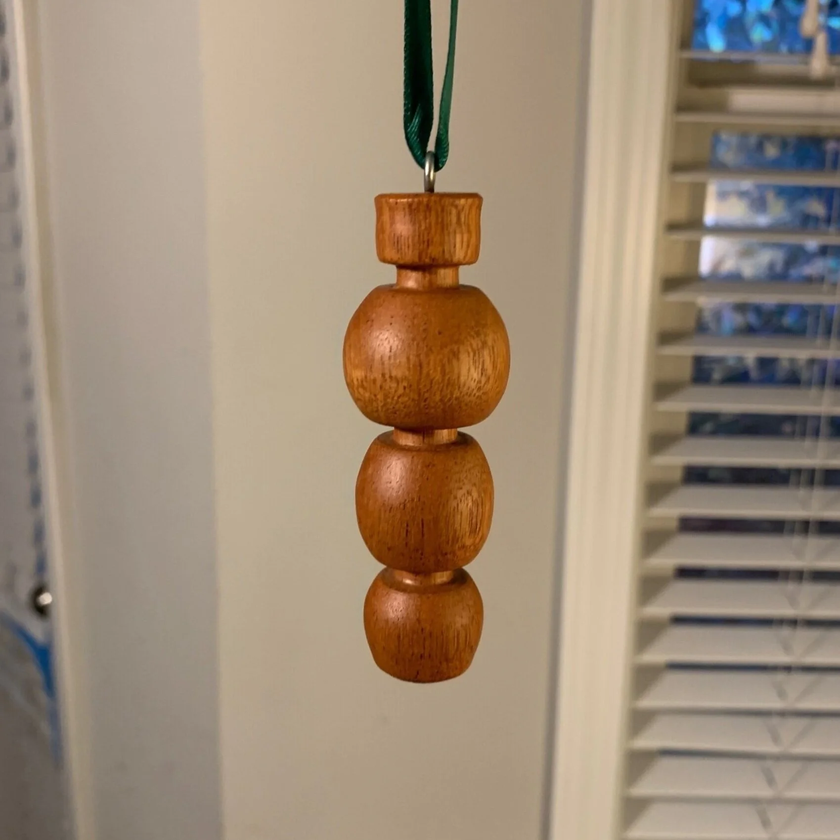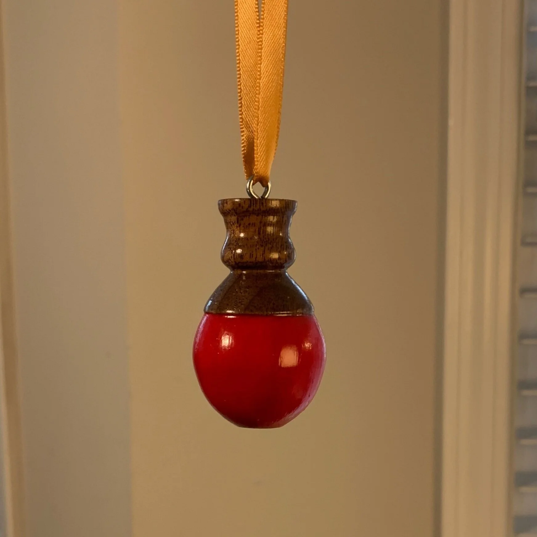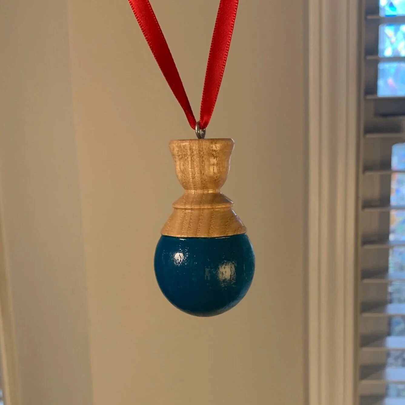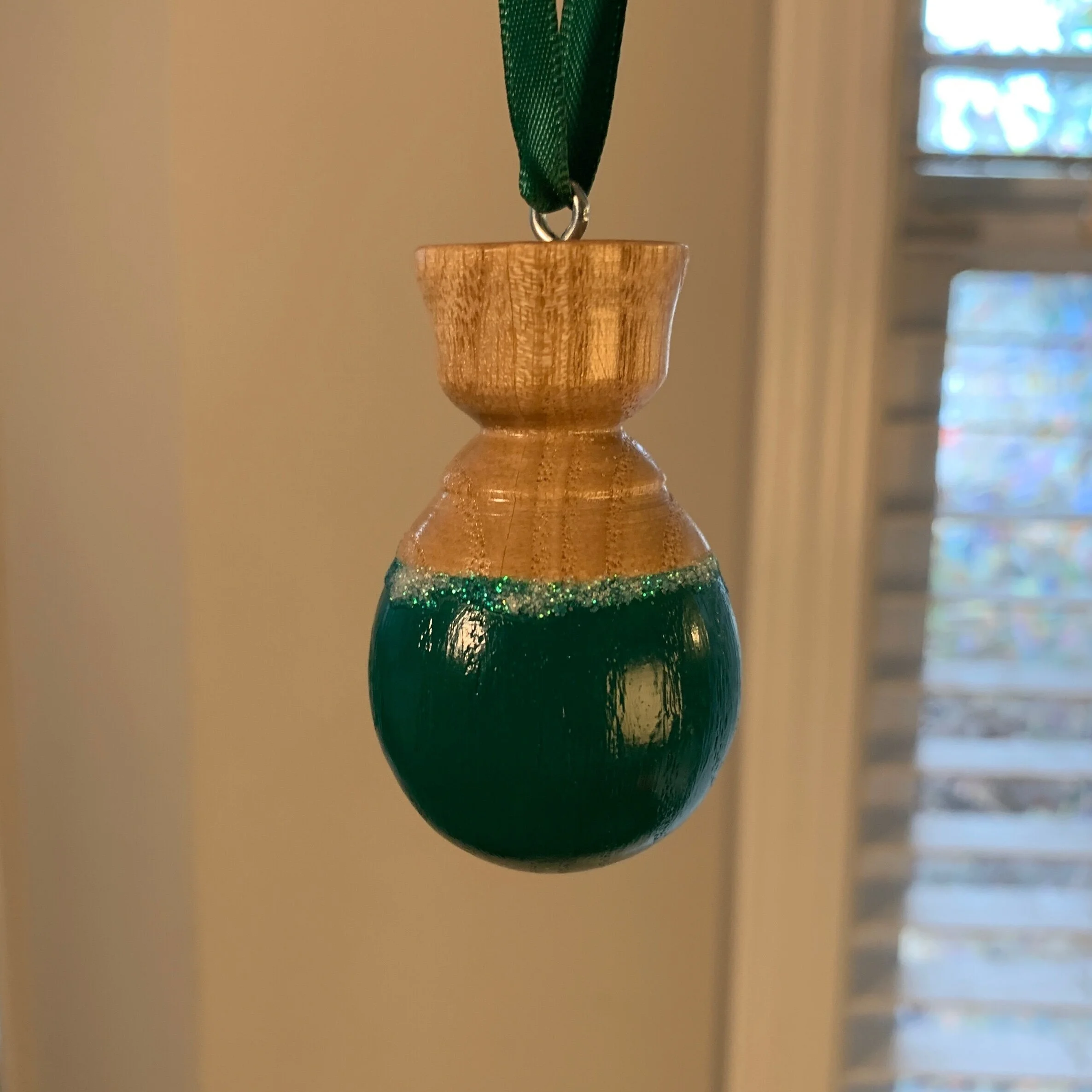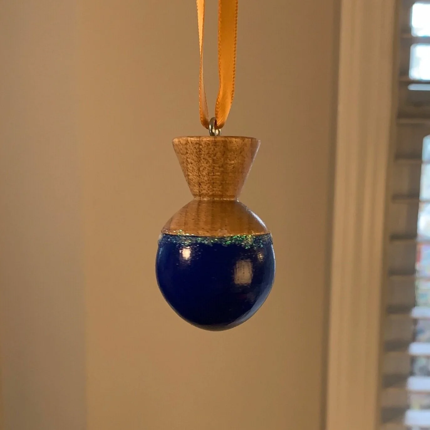 Julie turns all of her traditional wooden ornaments/fan pulls on the lathe. You can hang them on the Christmas tree or at the end of a ceiling fan chain. Each one is unique and 100% handmade from high-quality hardwoods of various types including: mahogany, maple, walnut, cherry, ash, and poplar. The cost of flat rate shipping covers up to 6 ornaments per box and will be applied at checkout. If there is an item that is currently sold out, you can contact Julie to request her to make a similar item.