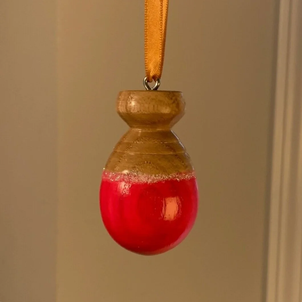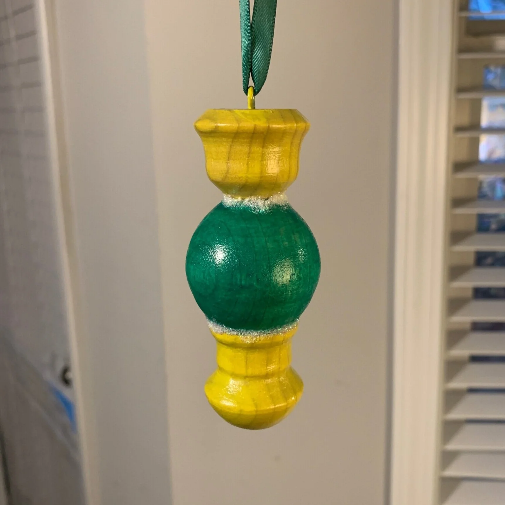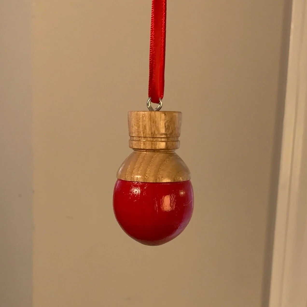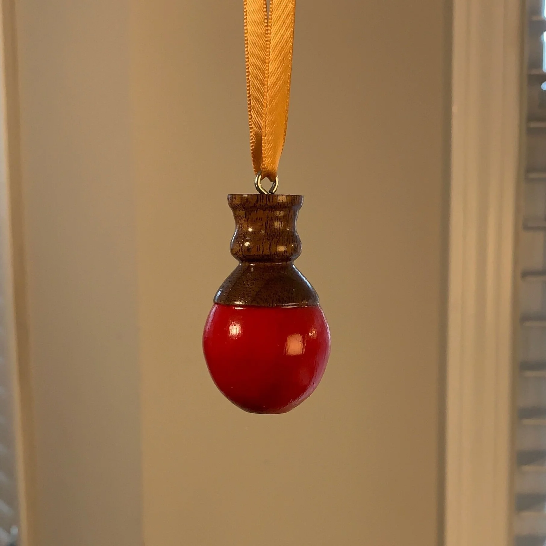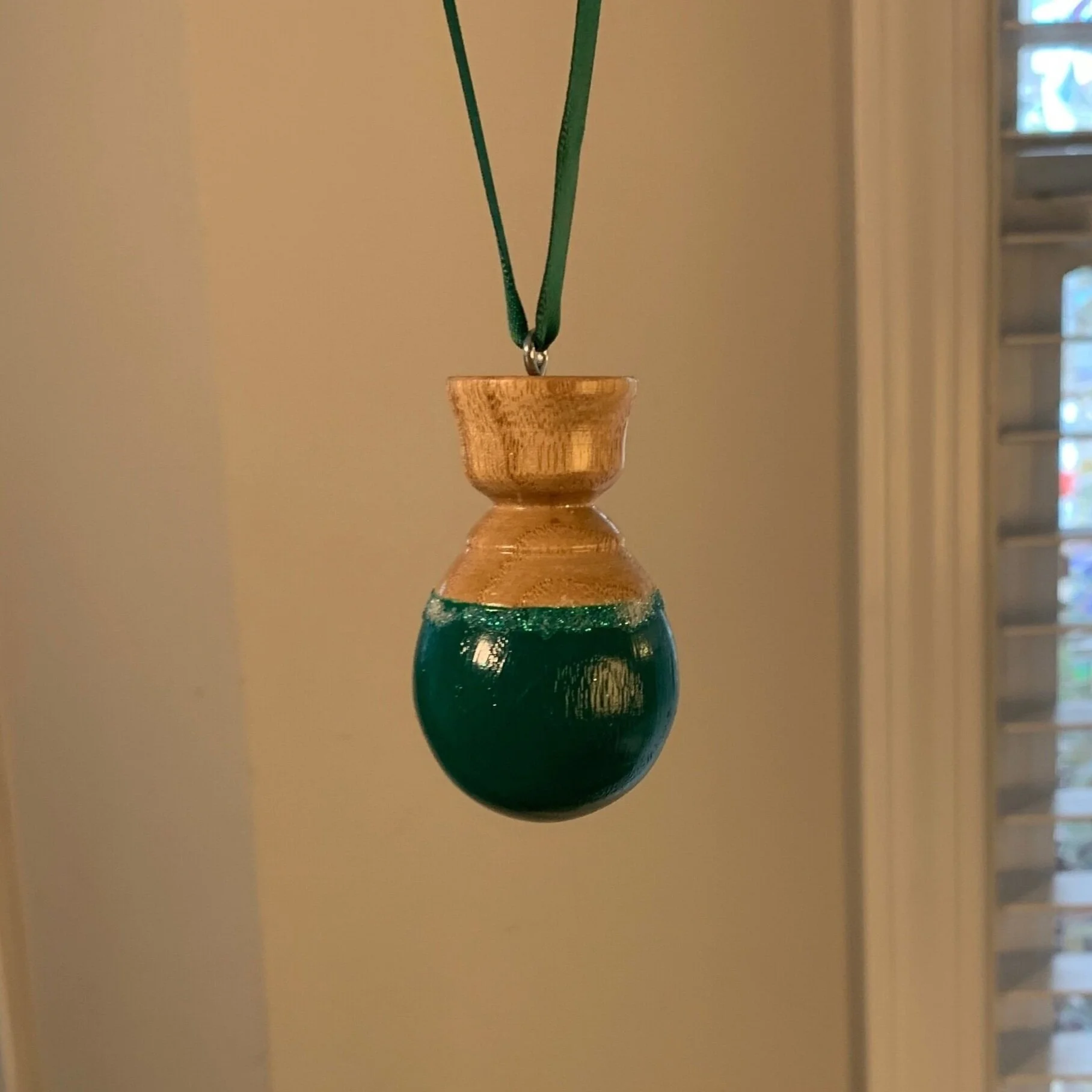Julie turns all of her traditional wooden ornaments/fan pulls on the lathe. You can hang them on the Christmas tree or at the end of a ceiling fan chain. Each one is unique and 100% handmade from high-quality hardwoods of various types including: mahogany, maple, walnut, cherry, ash, and poplar. The cost of flat rate shipping covers up to 6 ornaments per box and will be applied at checkout. If there is an item that is currently sold out, you can contact Julie to request her to make a similar item.