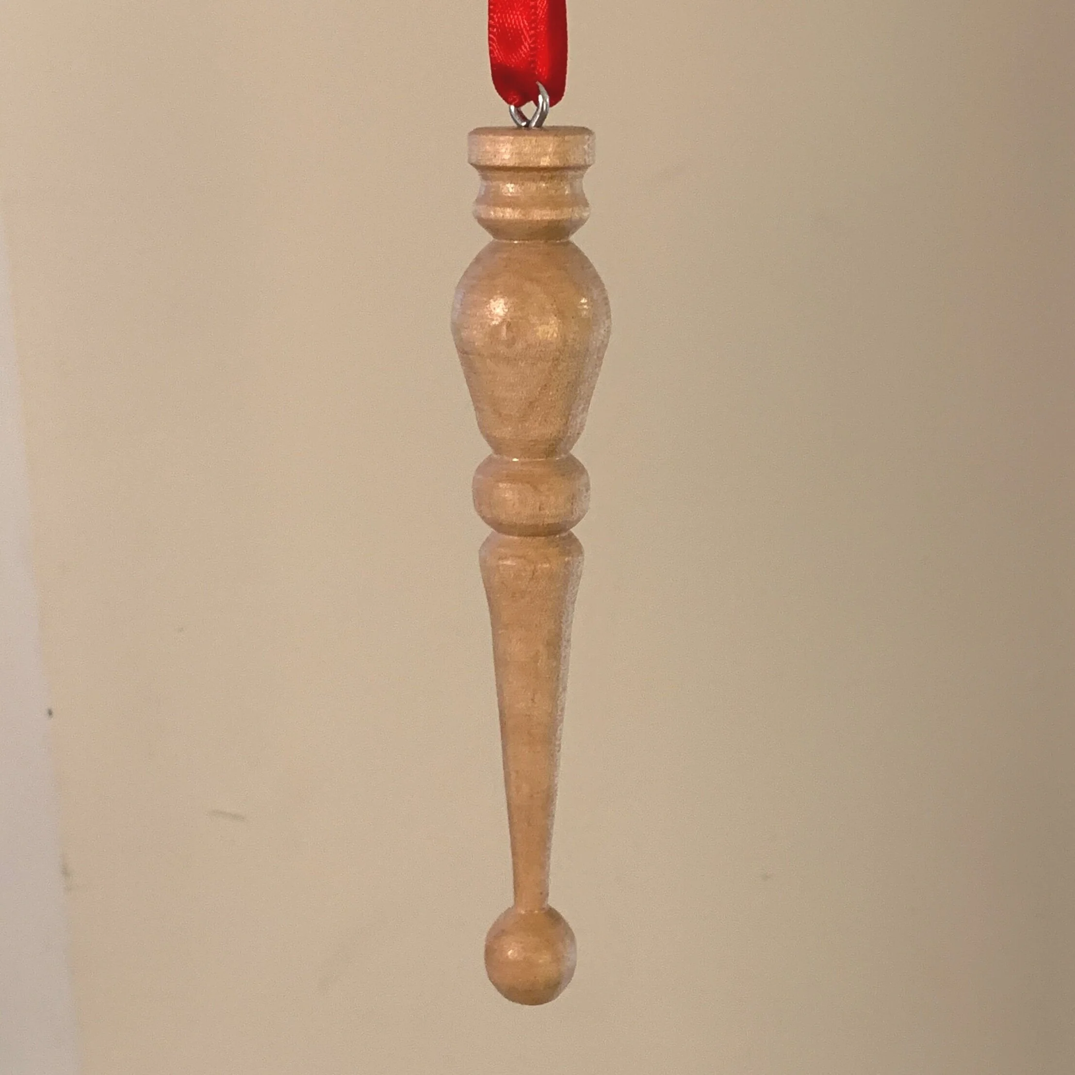 A beautiful, multi-shaped Christmas ornament, 100% handmade from high-quality maple wood. Julie turns her ornaments on the lathe, and then applies paint and/or a long-lasting wood finish. Every ornament is unique!