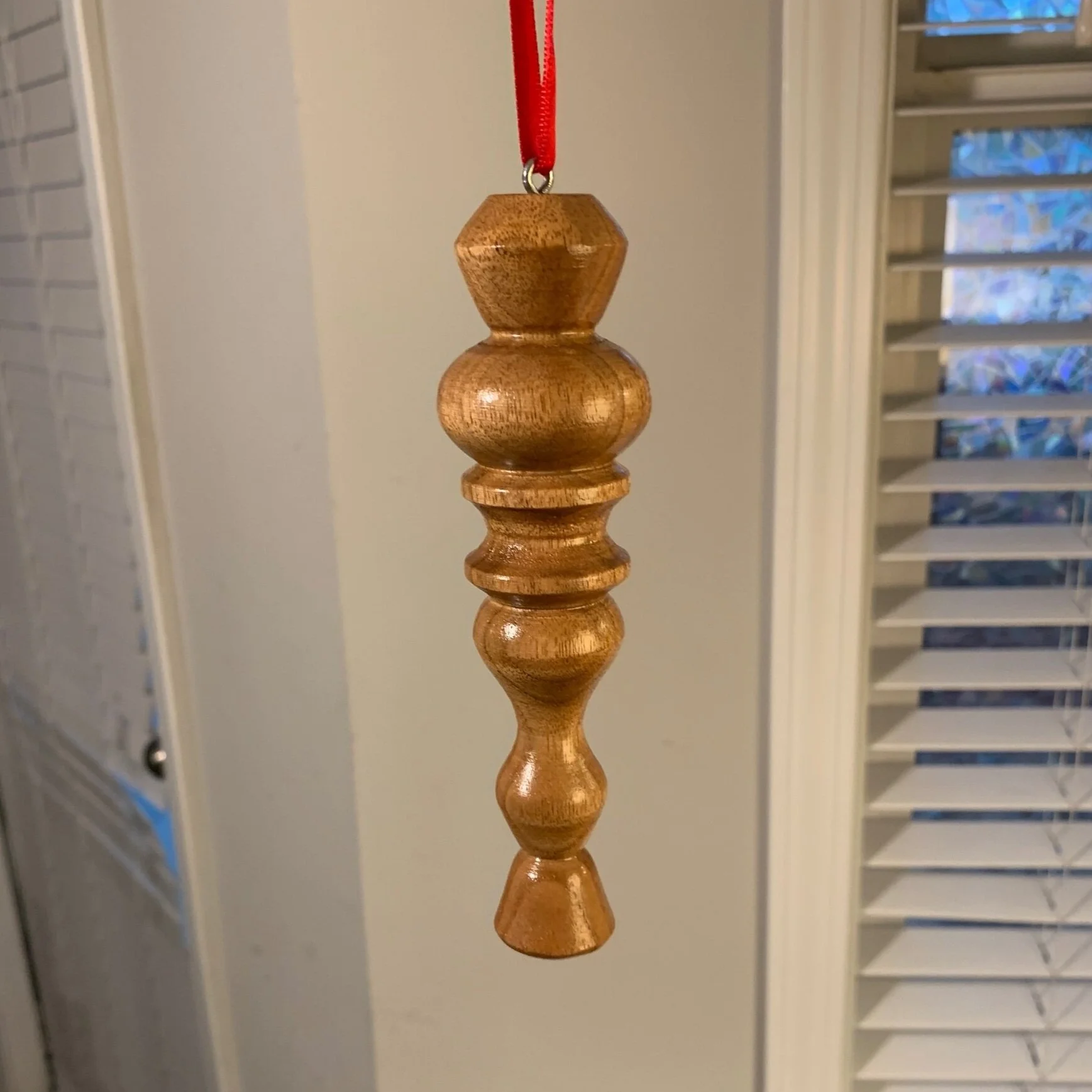 A beautiful, multi-shaped Christmas ornament, 100% handmade from high-quality maple wood. Julie turns her ornaments on the lathe, and then applies paint and/or a long-lasting wood finish. Every ornament is unique!
